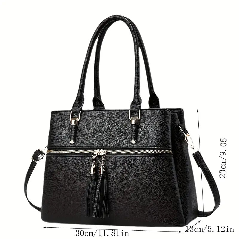 Women’s Large Capacity Soft Leather Tassel Shoulder Bag