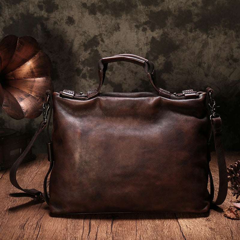 Men’s Luxury Vegetable Tanned Leather One Shoulder Messenger Bag