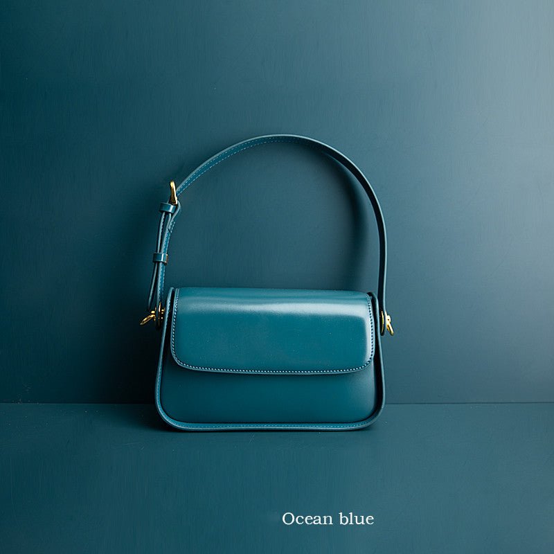 Made from high-quality cowhide leather. this bag exudes luxury and sophistication. Its sleek and minimalist design is perfect for those who appreciate fashion and simplicity. Available in a range of stunning colors including blue. green. wine red. dark brown. and milky white. there is a shade to suit every style.